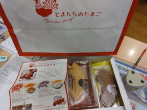 2025/12/19 大学のバイトの先生より写メの『とよんちのたまご』から作ったバームクーヘンを頂きました。養鶏場が九十九里旭市の温暖な気候のもと厳選した飼料、イオン水、人の手で採卵等徹底した環境の新鮮高級卵だそうです。職員に渡したので私の口には入りそうにないかもしれませんが、1個位取り返そうかなあ?🧇